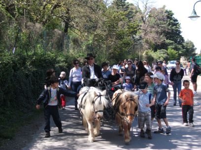 Les enfants monteront à tour de rôle sur la calèche, les participants suivront à pied au pas des chevaux.
